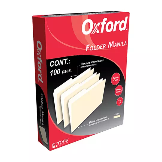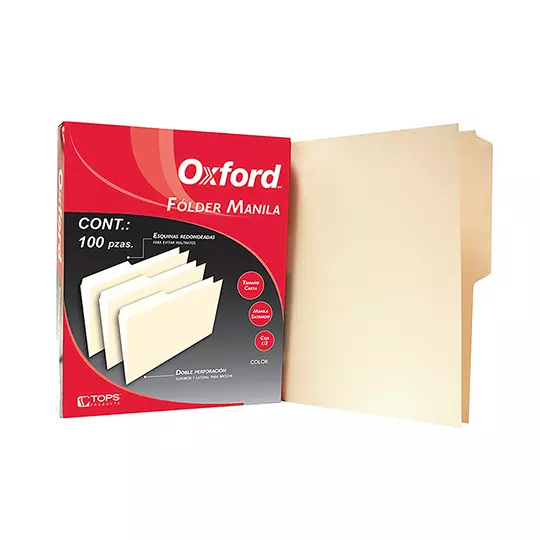 Folder manila Oxford carta color crema ceja 1/2 caja con 100 pzas